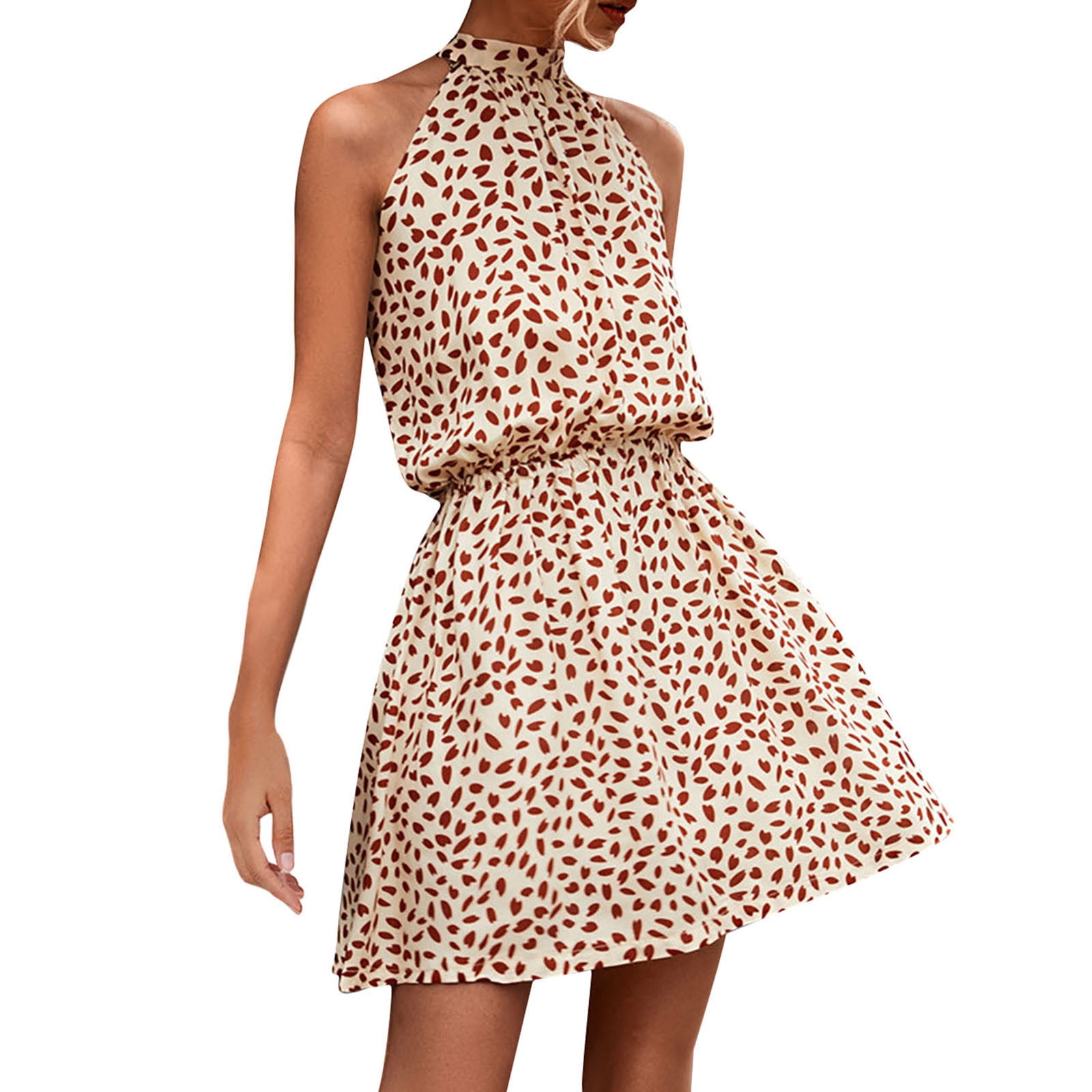 Womens Fashion Summer Halter Neck Casual Bandage Print Backless Mini Dress Summer Boho Sundresses Wedding Guest Tshirt Dress Beach Prom Dress Athletic Dress Babydoll Dress Plus Size Dress Walmart Com